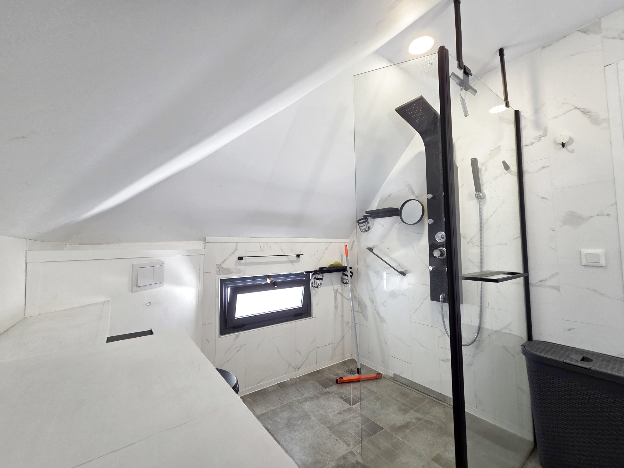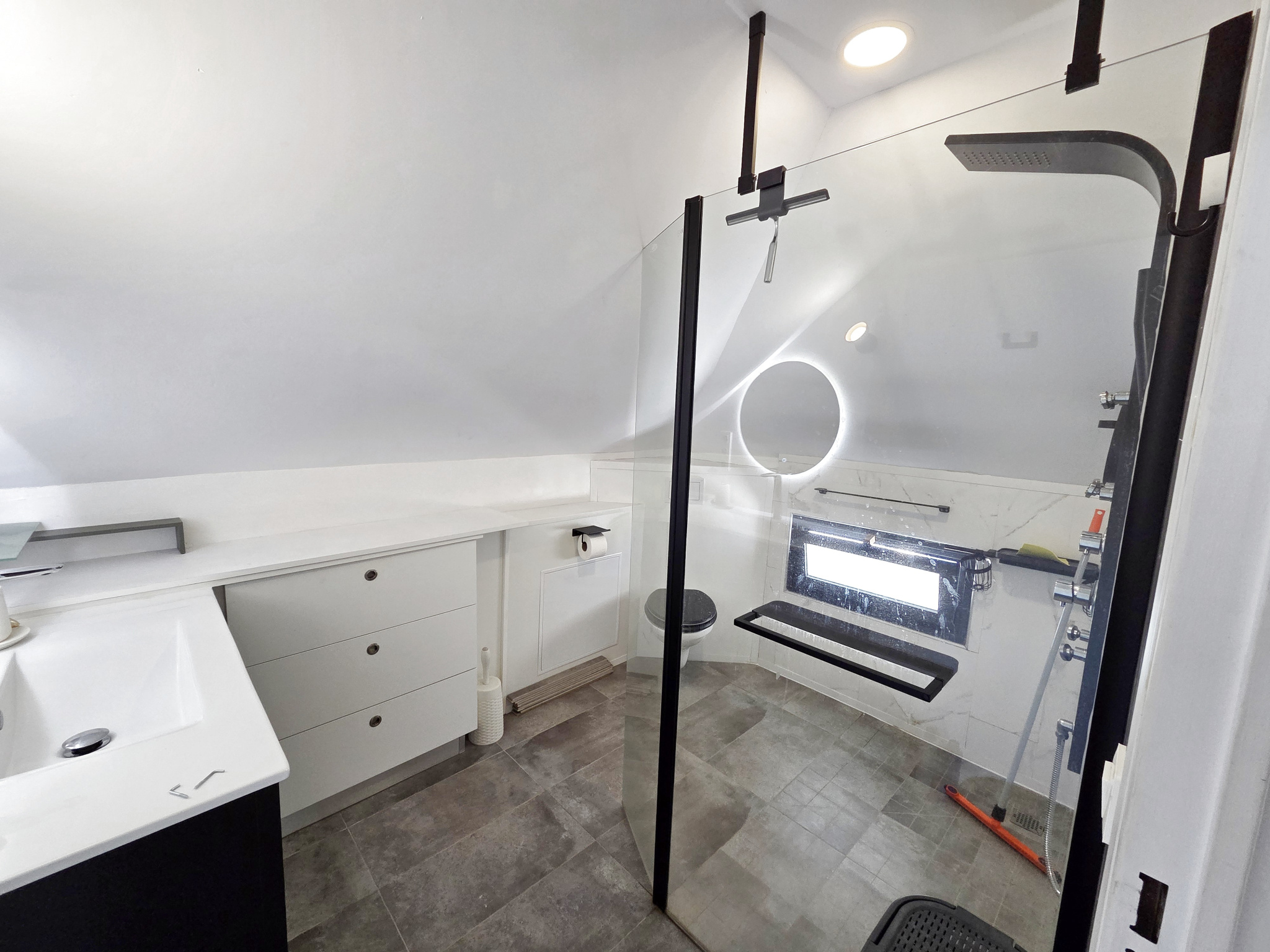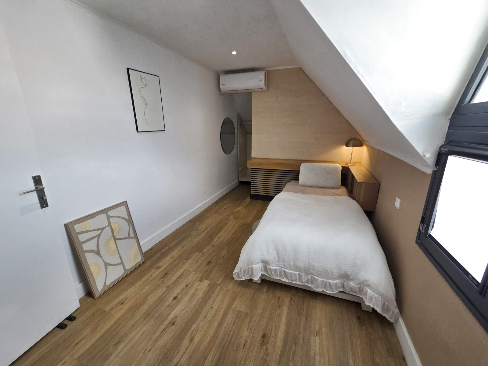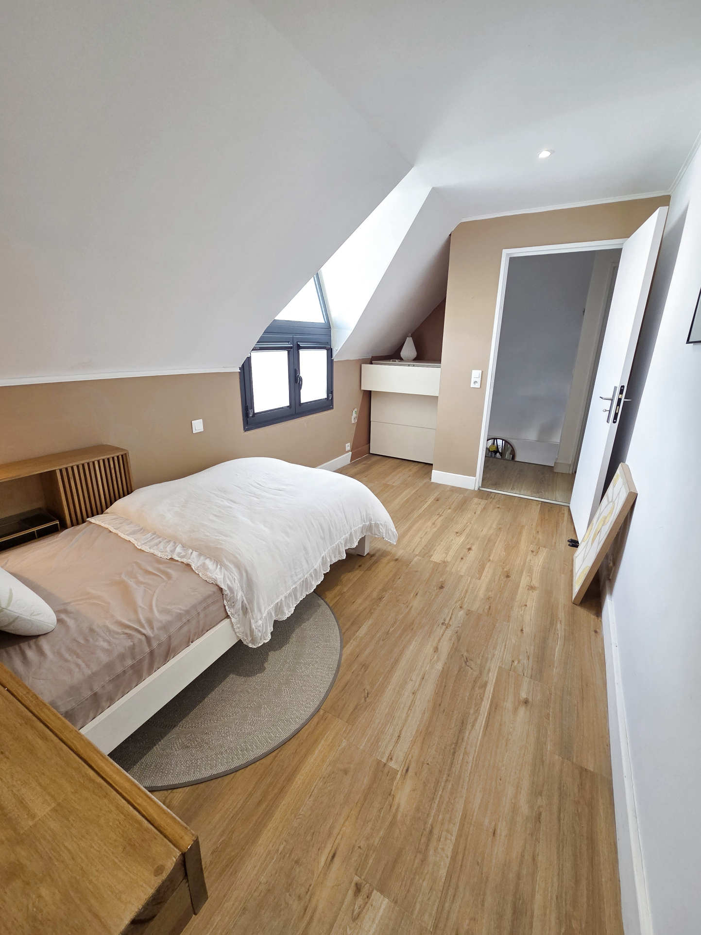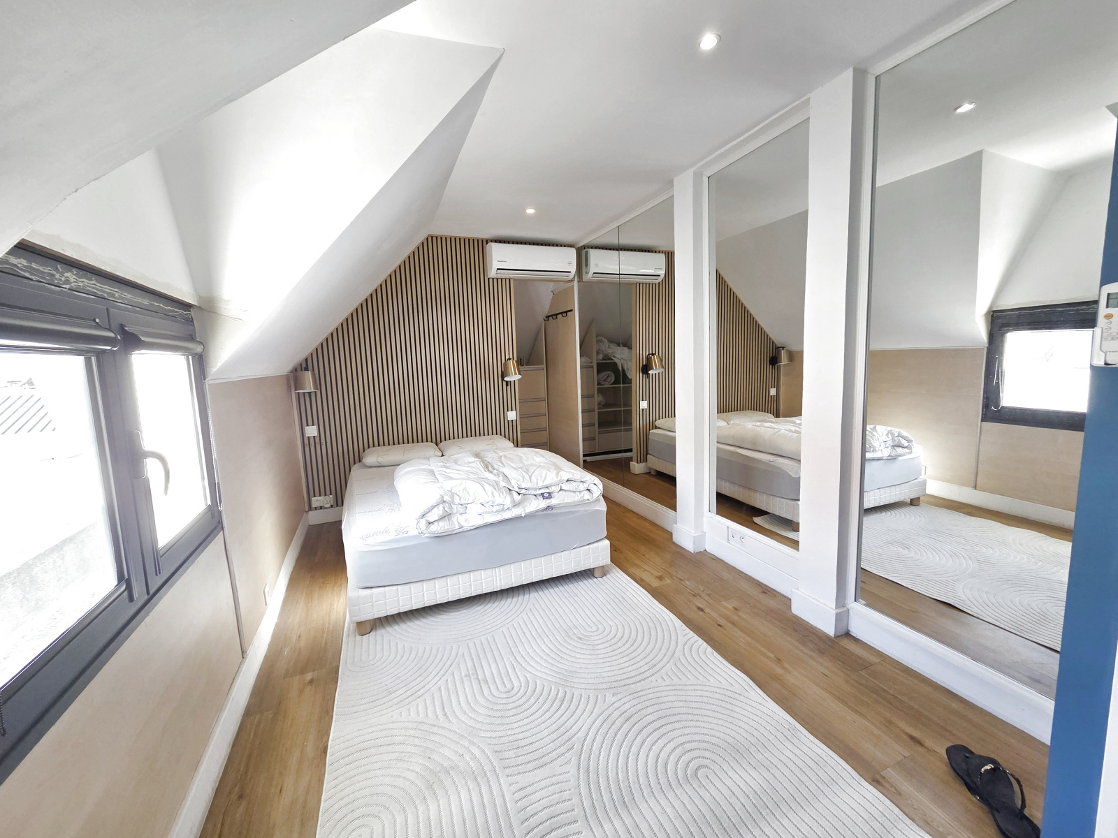 - A l'étage, le pallier dessert 2 belles chambres climatisées, chacune avec un placard - dressing aménagé derrière la tête de lit, et une belle salle d'eau optimisée avec des rangements sur-mesure, wc et douche à l'italienne. Cet appartement de très bon standing est agréablement aménagé et meublé, pour une ambiance à la fois moderne et cosy, et cherche un locataire soigneux et soigné qui saura tirer le meilleur parti de ce logement.